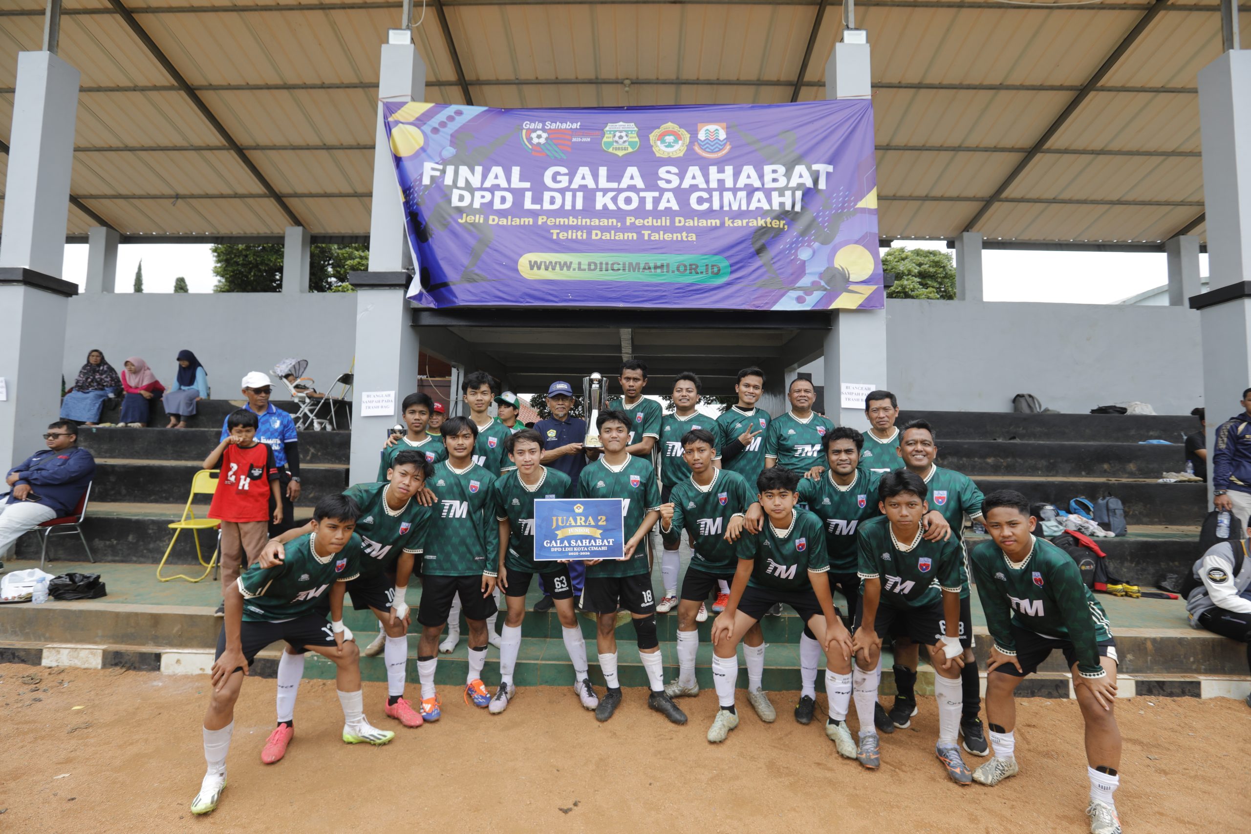 CIMAHI — Dewan Pimpinan Daerah Lembaga Dakwah Islam Indonesia (DPD LDII) Kota Cimahi. Melalui Bidang Pemuda Kepanduan Olahraga Seni dan Budaya (PKOSB) menggelar babak final Liga Sahabat LDII Kota Cimahi 2025-2026 di Lapangan Bola Saptamarga Pusdikjas, Baros, Minggu (8/2/2026). Kompetisi sepak bola yang diikuti 12 majelis taklim di bawah naungan LDII ini bertujuan menanamkan nilai-nilai karakter luhur melalui olahraga.