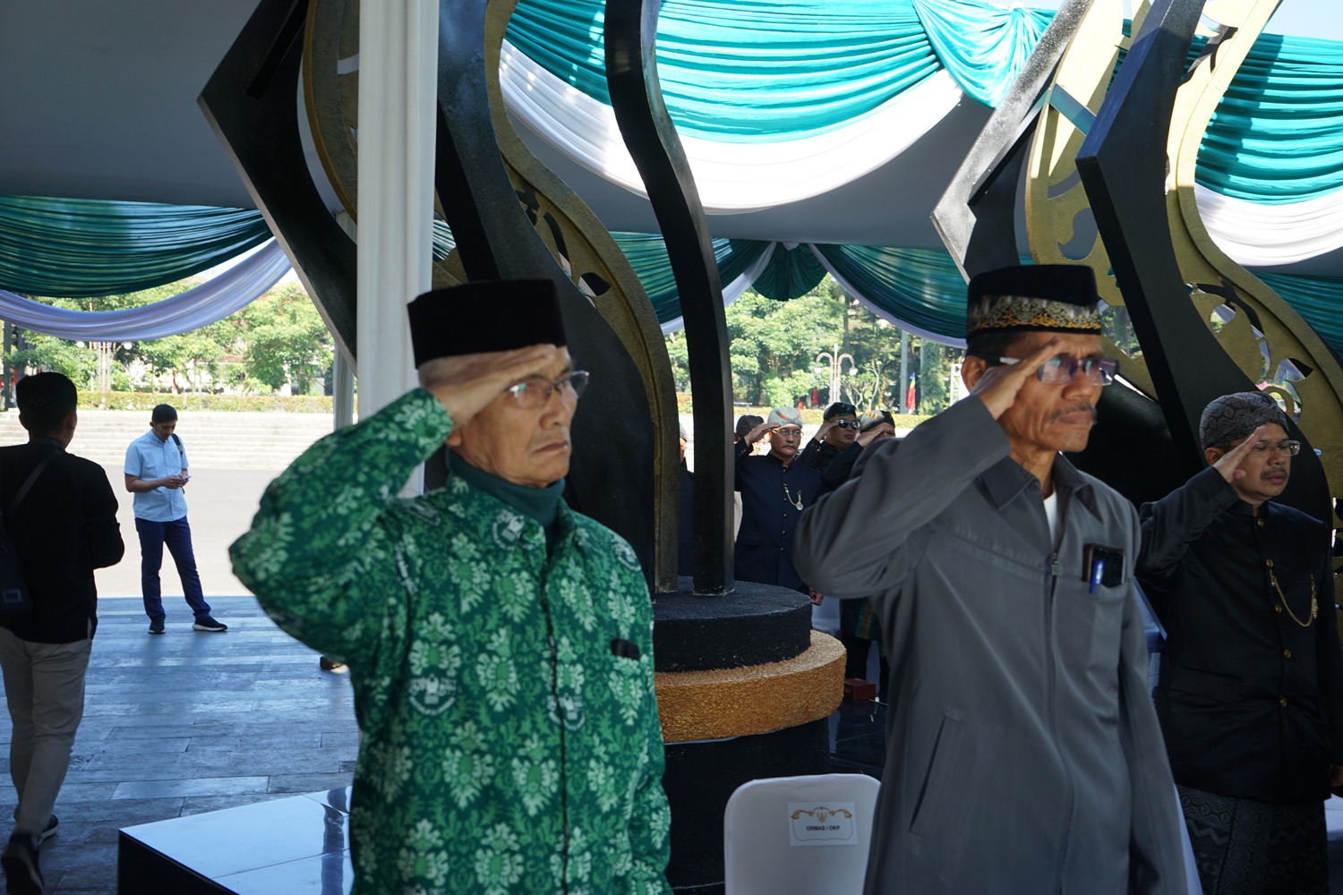Pada kesempatan tadi pun, para tamu undangan dihampiri dan bersalaman dengan bupati serta wakil bupati Bandung, Ali Syakieb.